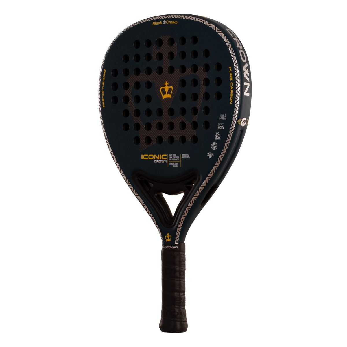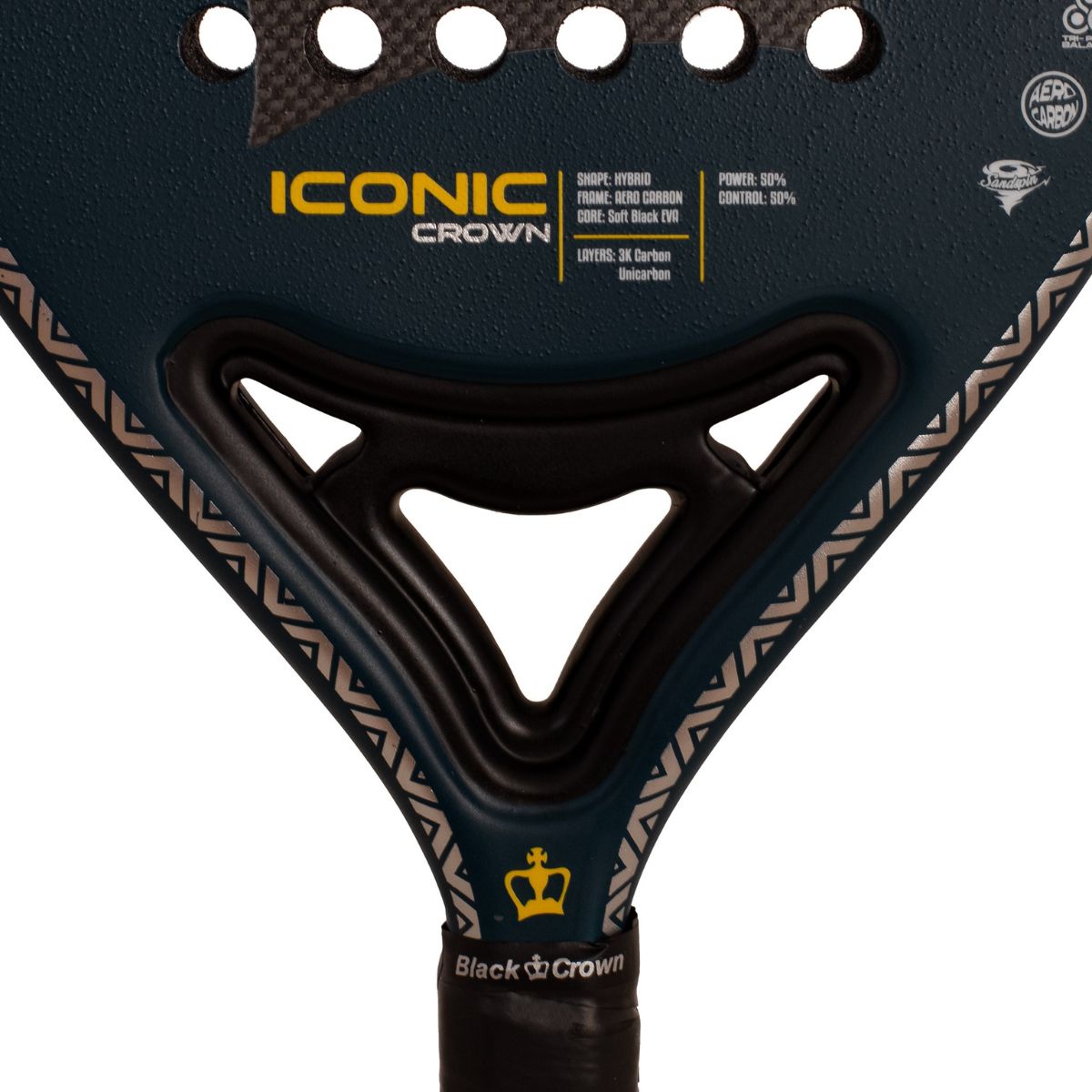 La Black Crown Iconic Crown 2026 es una pala polivalente 50/50 perfecta para jugadores que buscan equilibrio total. Con carbono 3K, goma Soft EVA Black y sistema Tri-Point Balance, ofrece gran punto dulce, estabilidad y rendimiento en todas las fases del juego.