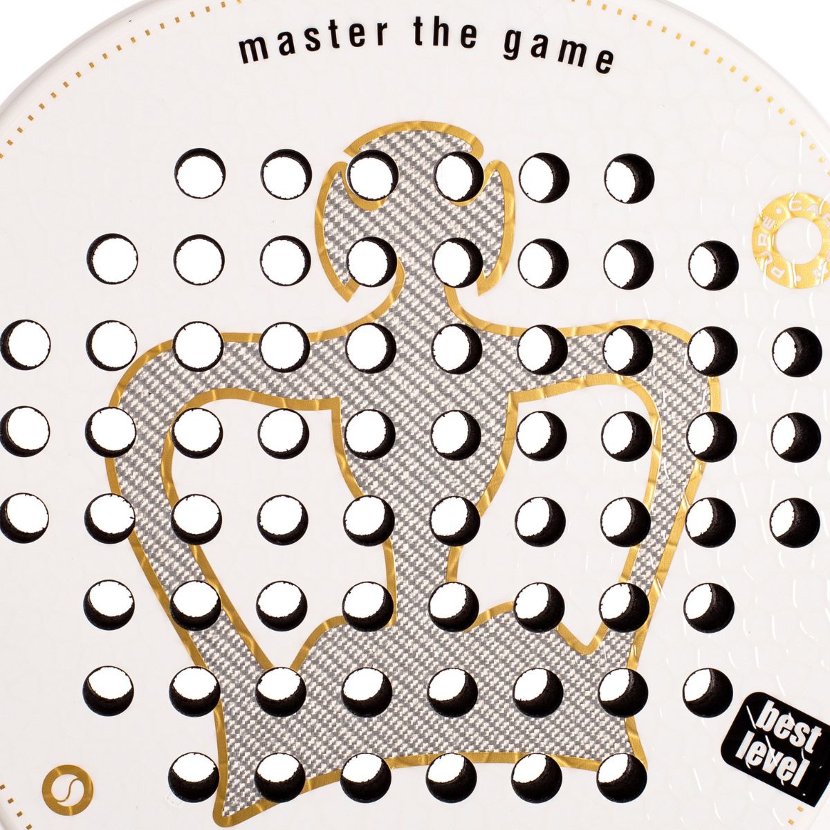 La forma redonda de la Black Crown Piton White Soft está pensada para maximizar el control y la estabilidad en cada impacto. Su balance bajo y su peso comprendido entre 355 y 370 gramos favorecen una manejabilidad excelente, ideal para jugadores que buscan agilidad, rapidez de reacción y comodidad durante partidos largos.