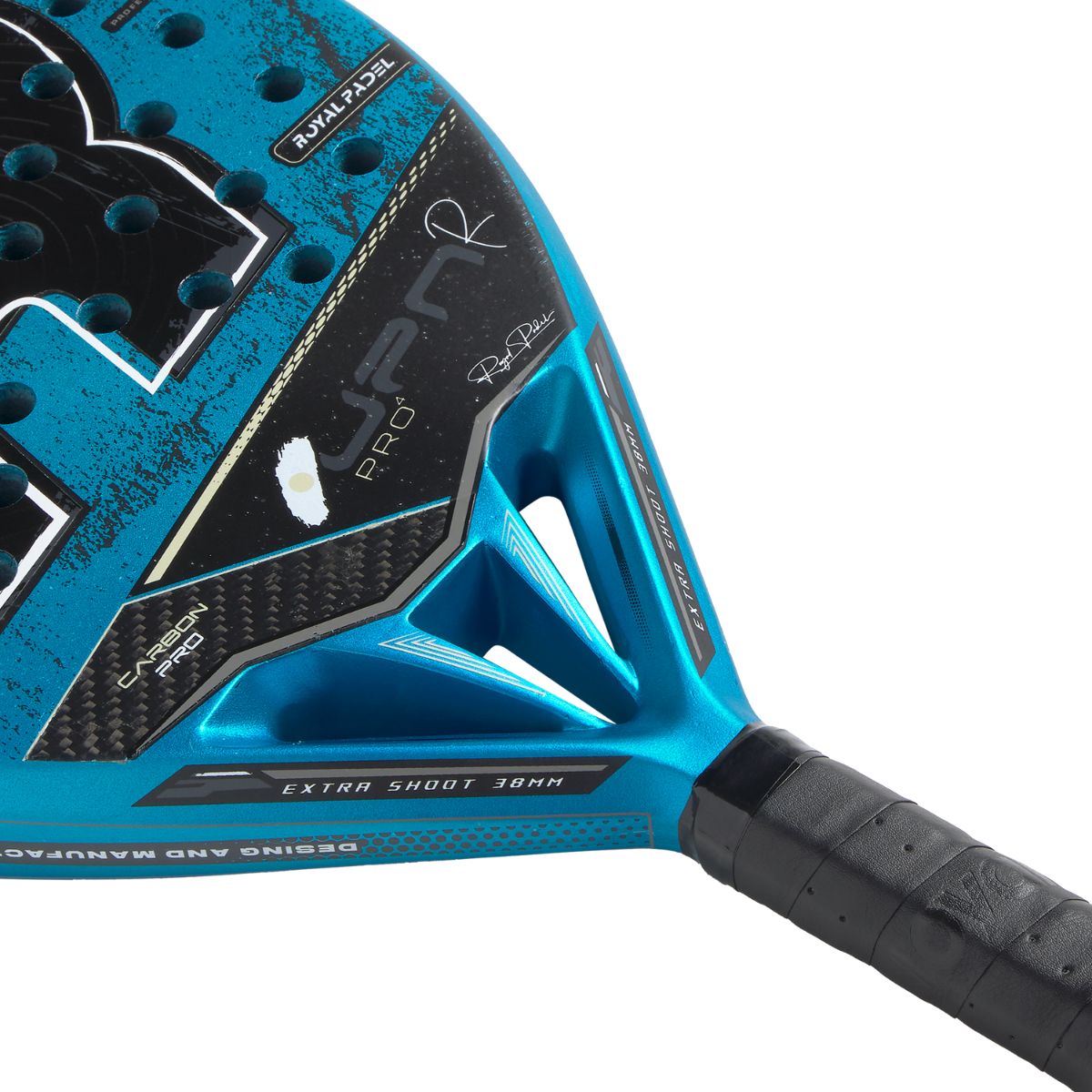 La estructura de la Pala Royal Padel Japan Pro Azul 2026 combina un marco fabricado en fibra de vidrio Fibertech de 0,5 mm con refuerzos estratégicos de fibra de carbono en el corazón, lo que incrementa la estabilidad y la durabilidad del conjunto. Esta construcción ofrece una pala sólida, resistente a la torsión y con una respuesta muy estable incluso en golpes descentrados, algo clave para jugadores avanzados que exigen regularidad y fiabilidad en cada punto.